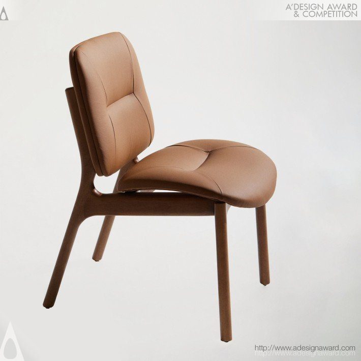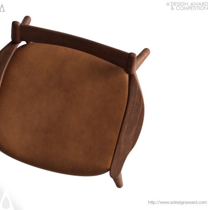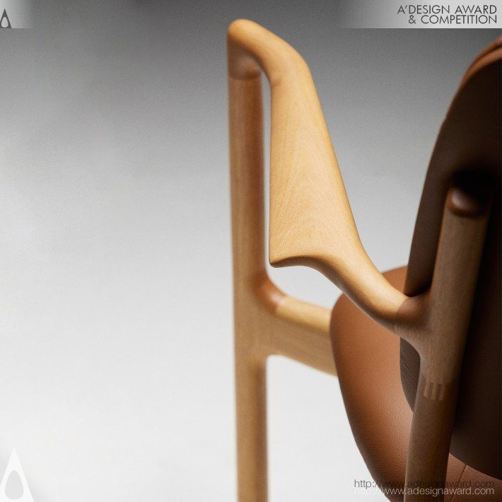 從天空與自然流動中汲取靈感的座椅設計。其名稱寓意天堂與天體,設計以輕盈流暢的線條回應天空的寧靜感,同時融入河流俯瞰時蜿蜒交織的自然形態,展現優雅而內斂的氣質。椅體以合法來源的永續實木製成,透過 CNC 精密加工,將木材的硬度與深色紋理,轉化為柔和、連續的有機曲線。