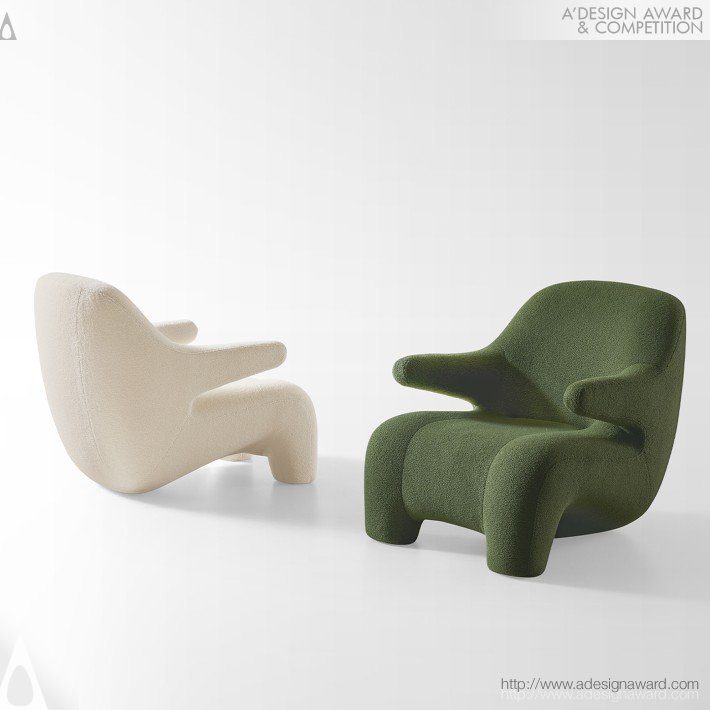 椅體採人體工學設計,105 度傾斜靠背貼合身形,提供放鬆且安全的坐感。材質提供聚酯纖維與羊毛兩種選擇,前者以 3D 高密度結構帶來柔軟與耐用性,後者呈現自然捲曲的細膩觸感,皆不易變形與起毛球。多元色彩可融入各式空間,營造溫暖、舒適且具情感溫度的居家氛圍。