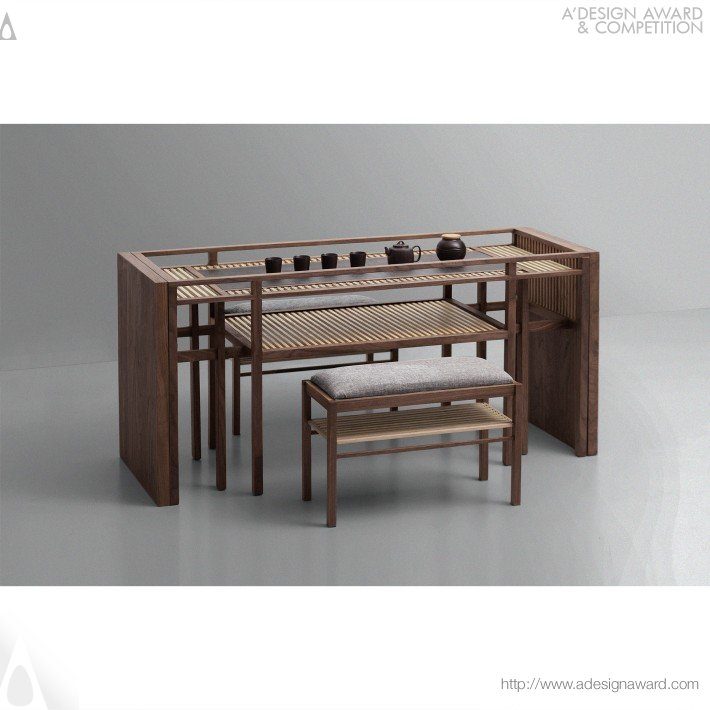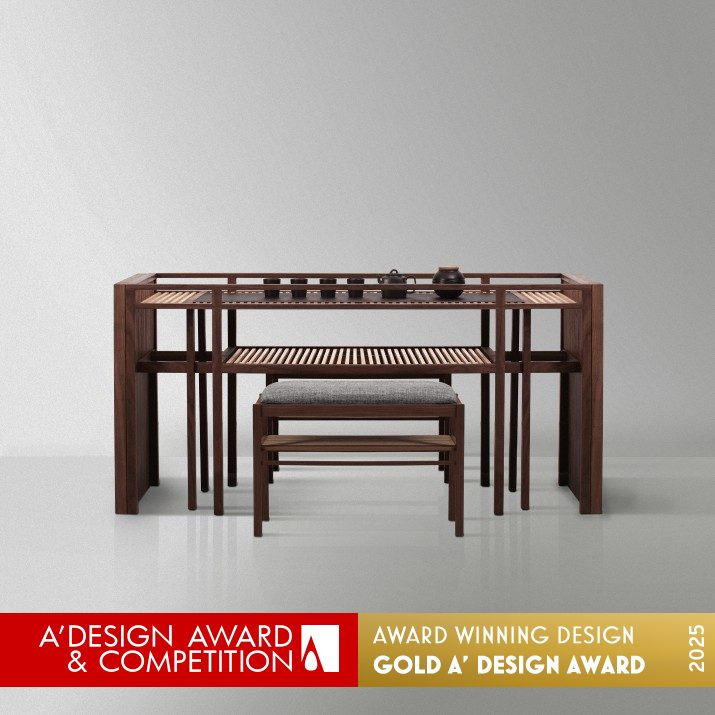 將亞洲傳統轉化為可被感知與實踐的生活體驗。設計融合茶道與書法精神,以極度纖細卻穩定的木構骨架,重塑家具與儀式之間的關係。作品既是日常桌椅,也是承載文化的器具。