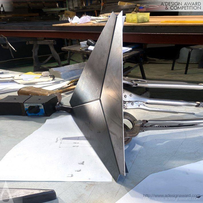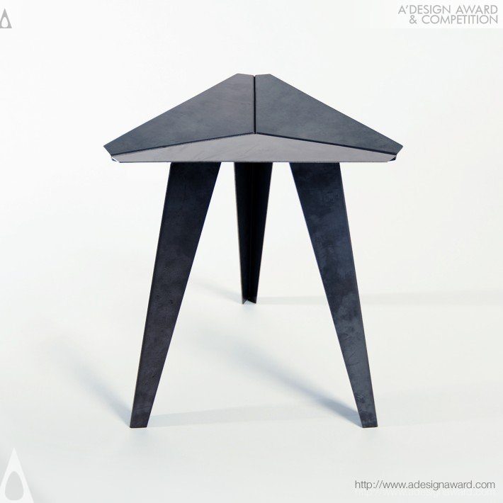 以三角幾何為核心的極簡金屬凳,透過彎曲焊接的金屬板形成穩定而流暢的造型,兼顧耐用性與環保理念。設計以節省空間為目標,將結構強度與美感融合,適合緊湊居住與公共空間使用。精準角度的金屬板提升承重與穩定性,柔和弧形座面則帶來良好的人體工學坐感。