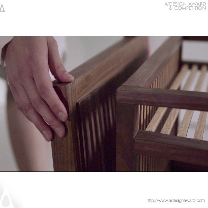 透過滑動、抬升與定位的動作,桌面可在書寫檯與茶道台之間轉換,沒有機械與按鈕,只有流暢、精準的動作,引導使用者進入正念狀態。全件由553個再生木材零件組成,採用傳統榫卯工藝純手工打造,不使用任何金屬緊固件,展現材料與工藝的高度平衡。每一次觸碰、重量回饋與咔嗒聲,皆成為五感參與的儀式,讓傳統不再只是象徵,而是化作真實體驗。