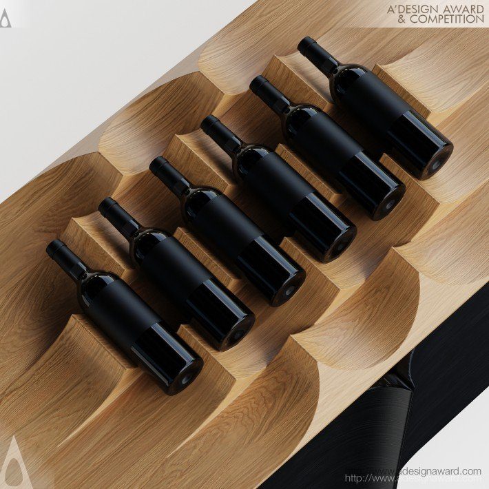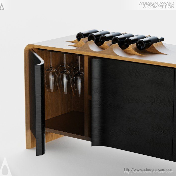 以巴西北里奧格蘭德州納塔爾著名的 Genipabu 沙丘為靈感,將風蝕地景轉化為家具語彙。設計捕捉沙丘在風力作用下形成的流動曲線與韻律節奏,形塑出富有雕塑感的櫃體外型。其標誌性的三角節奏結構不僅呼應沙丘地貌,也巧妙整合為酒窖機能,使形式與實用自然融合。