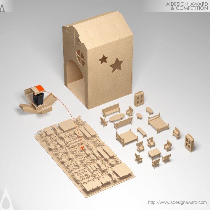 設計團隊打破傳統思維,將包裝轉化為環保、可重複使用的 DIY 體驗,是專為大型儲能產品設計的創新互動包裝。外盒可展開變成鏤空玩具屋,內托盤則能拆卸組裝成小型家具,甚至可透過多個包裝拼接成城堡或遊樂場,讓包裝不僅僅是運輸容器,更成為家庭互動與永續生活的一部分。