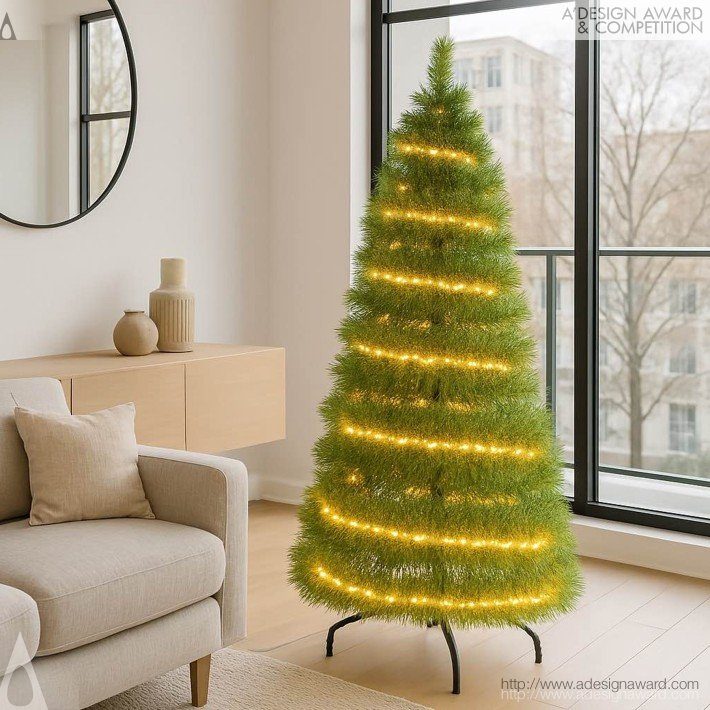 其最大特色是整合 USB-C 聖誕燈系統,為全球首創,可相容於各地插頭,減少電子垃圾,並能全年作為充電裝置使用。螺旋結構設計讓安裝過程僅需約一分鐘,無須拆解燈線即可展現溫暖氛圍。結構可完全拆卸,並可壓縮為扁平化包裝,在運輸與收納中有效降低碳排放與空間浪費,成功打造一棵兼具 美感、永續與功能性 的新世代聖誕樹。