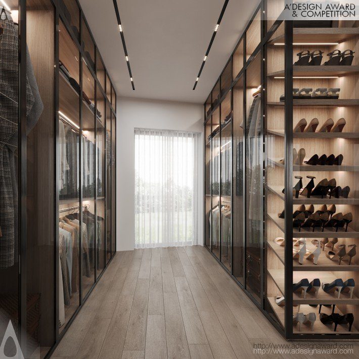 V 住宅是一座將永續性與現代奢華完美融合的豪華住宅,追求淨零能耗,以親生物設計、智慧科技與環境管理,重新定義未來奢華生活的樣貌。建築以節能隔熱材料、三層玻璃窗及 KNX 智慧系統打造,全面整合自動化控溫、照明與能源管理,確保舒適與低耗能並行。