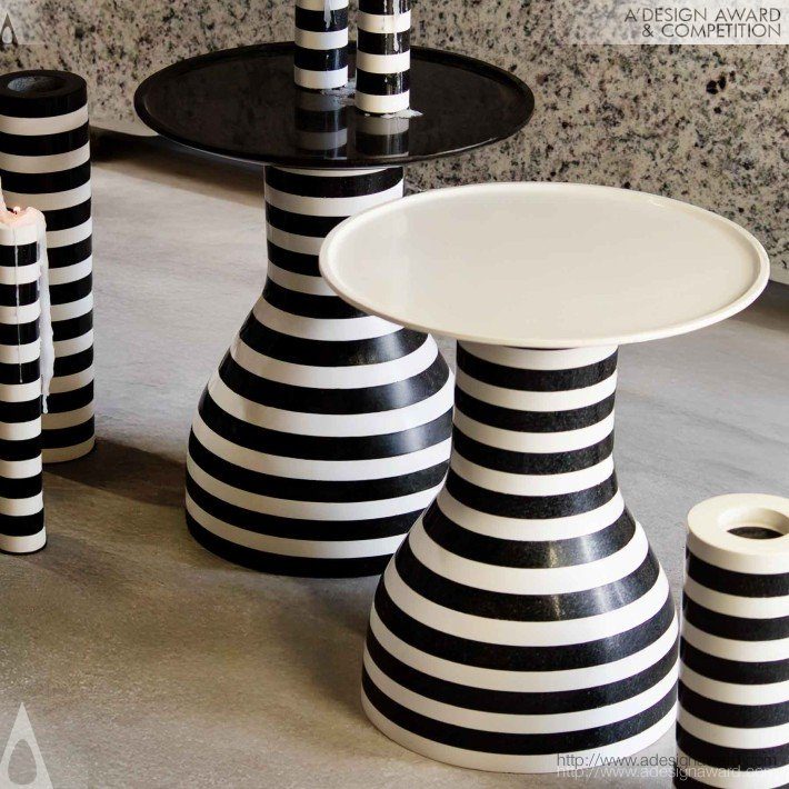 運用廢棄大理石製作永續裝飾系列,將廢物轉化為優雅、功能性的藝術品。靈感源自大自然隨時間重塑材料的能力,每件花瓶、燭台與桌子都從另一件作品的核心雕刻而成,實現零浪費。該系列強調循環設計與當代美學,兼具手工工藝與先進 CNC 加工技術,保留大理石自然紋理與耐用性。