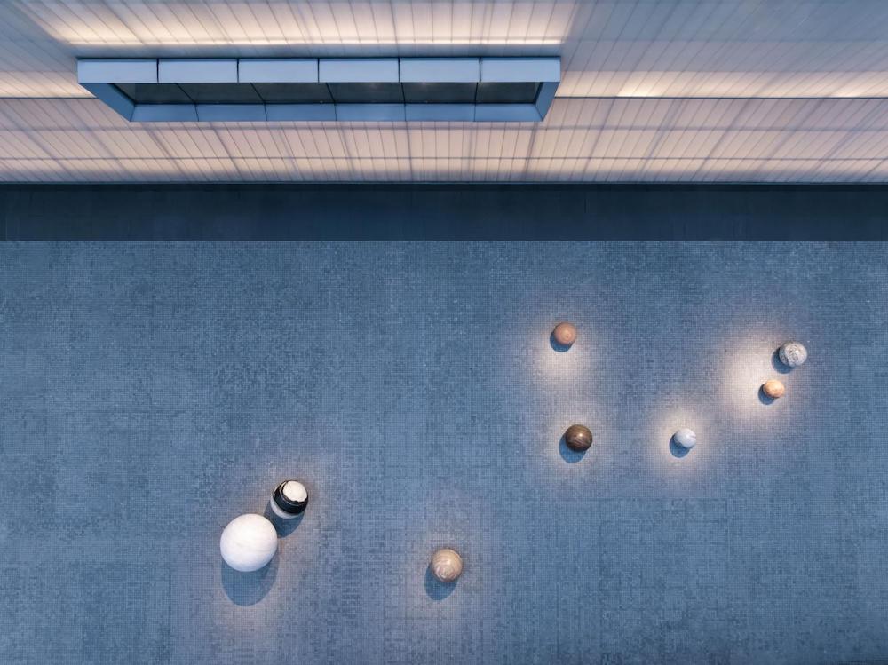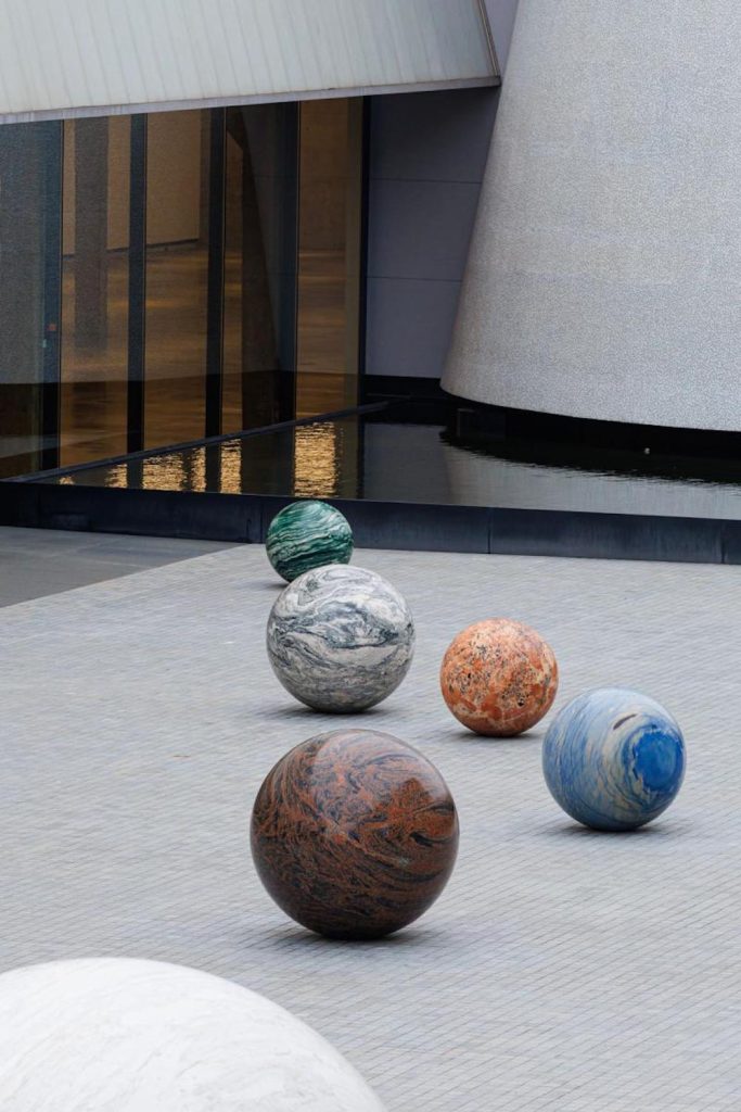館藏涵蓋超過 200 位藝術家、逾 1,000 件作品,展現泰國在亞洲當代藝術版圖中的能見度與影響力。博物館戶外設有約 1,400 平方公尺的庭院,靈感來自京都龍安寺的枯山水。幾何車道將倒影池一分為二,引導訪客由城市喧囂過渡至沉靜氛圍,呼應曼谷的水鄉記憶。現階段展出德國藝術家 Alicja Kwade 的裝置作品《Pars pro Toto》,由 11 顆大型石球構成,在水面倒影中形成行星秩序的隱喻。