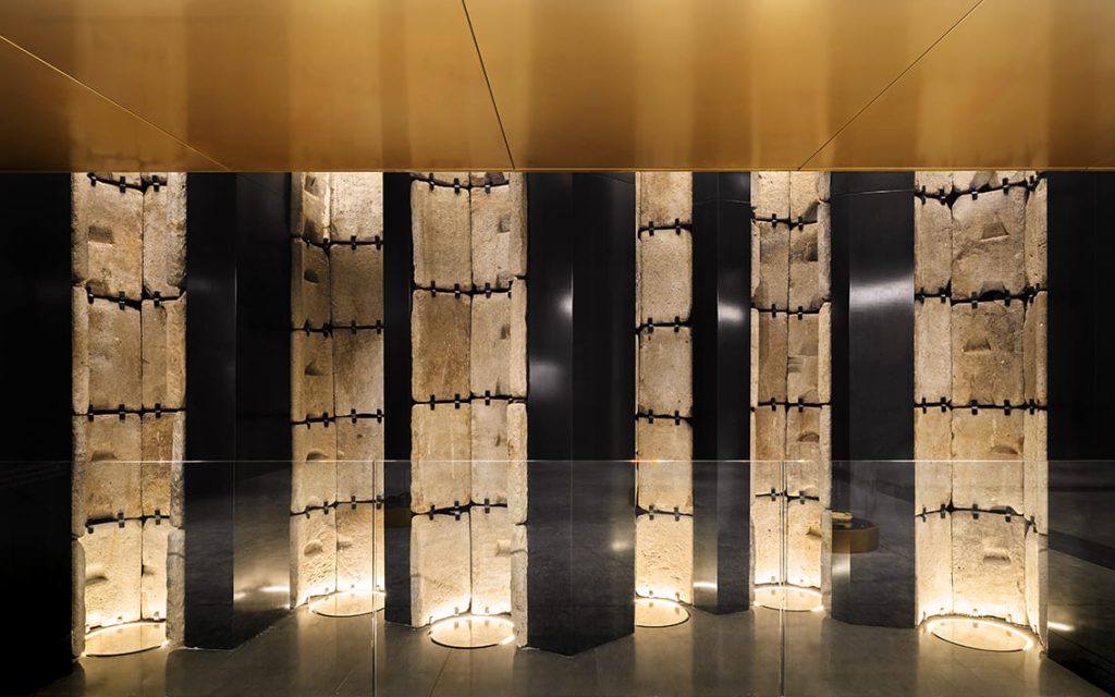 在車站裡,考古不再是被觀看的背景,而是構成空間節奏的核心元素。運用粗獷的結構混凝土、低反射材質與燈光效果,塑造出身歷其境的歷史感知體驗,光線在文物上駐留,與當代建築形成強烈但內斂的對比。通勤者在上下班途中,無需刻意停留,便已自然走進一段橫跨千年的城市敘事。