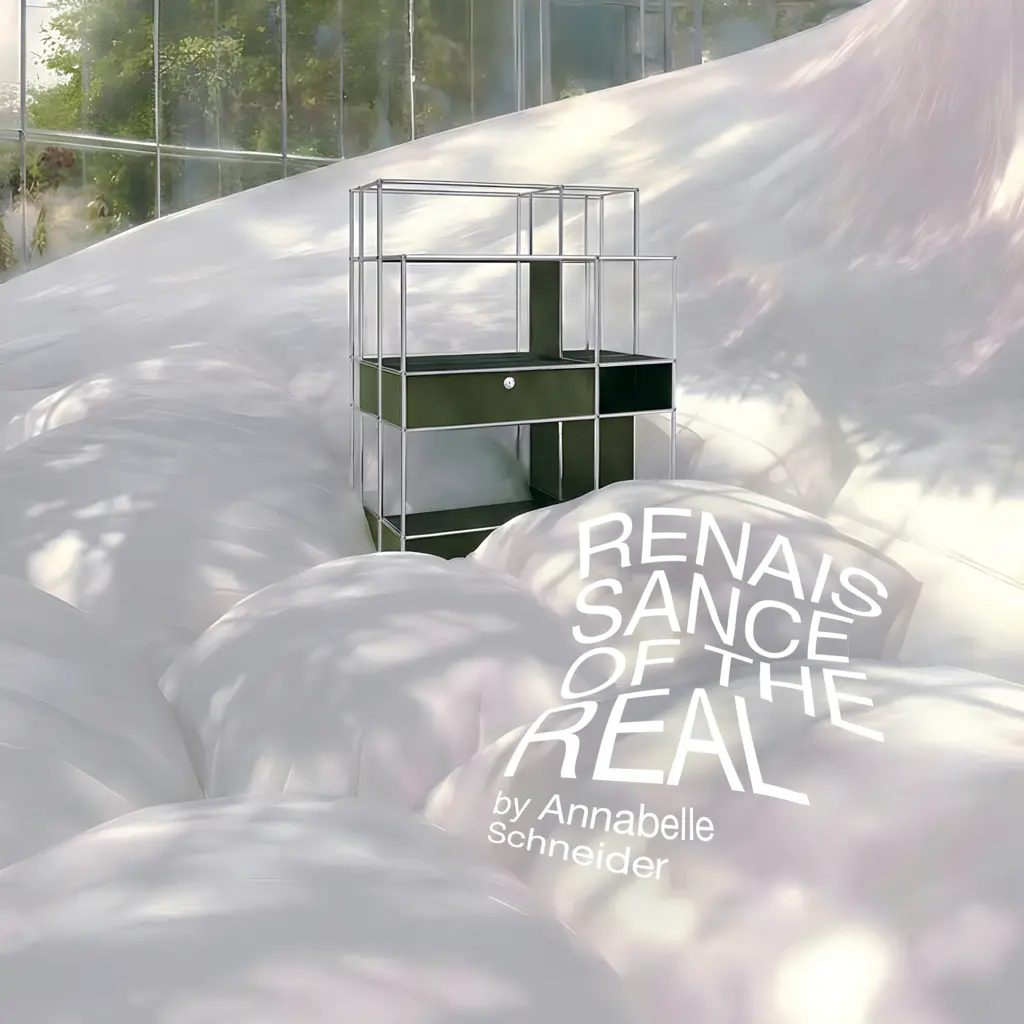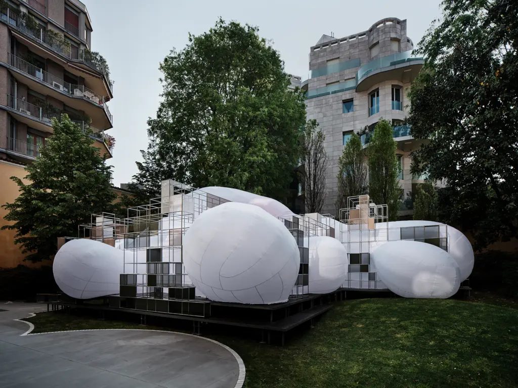 瑞士家具品牌 USM Modular Furniture 攜手挪威建築事務所 Snøhetta,並與瑞士設計師 Annabelle Schneider 合作,於路易吉·羅瓦蒂基金會花園 ( Fondazione Luigi Rovati ) 打造沉浸式裝置《真實的復興 Renaissance of the Real 》。展覽核心在於反思數位時代下「身體感知的缺失」,裝置主體巧妙結合了 USM 標誌性的鋼構模組與柔韌的織物,在古老的博物館花園中打造出一個會隨呼吸頻率收縮、膨脹的「白色繭狀空間」。