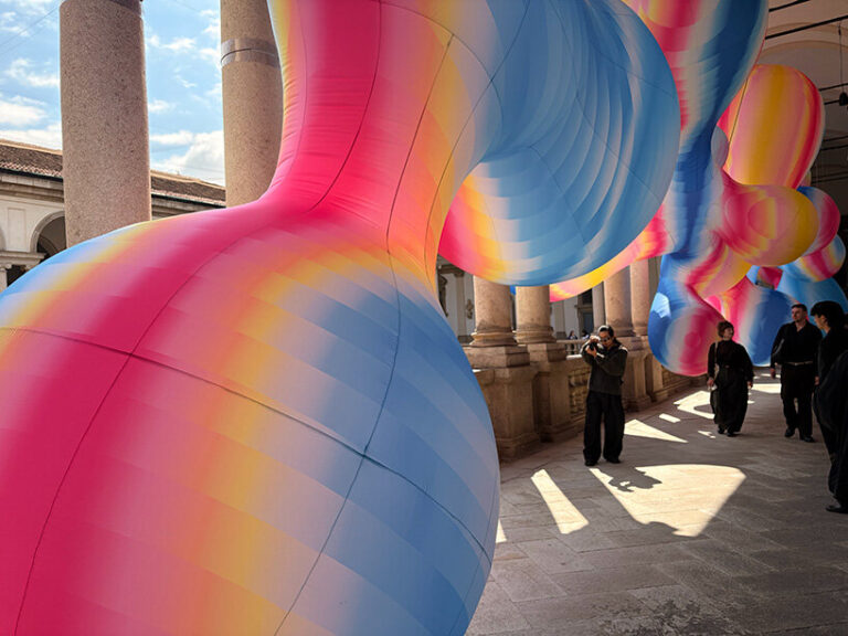 義大利產品設計師 Sara Ricciardi 於 布雷拉美術館 ( Pinacoteca di Brera ) 推出沉浸式裝置《Serotonin – The Chemistry of Happiness》,將「血清素」轉化為可感知的空間體驗。作品以充氣結構構成,隨呼吸般節奏伸縮,結合光線、色彩與聲音,營造持續流動的感官環境,讓觀眾在其中感受情緒的起伏與轉變。裝置以有機形態對比美術館厚重的歷史建築,形成柔軟與堅固的張力關係,強調空間中的對話與平衡。